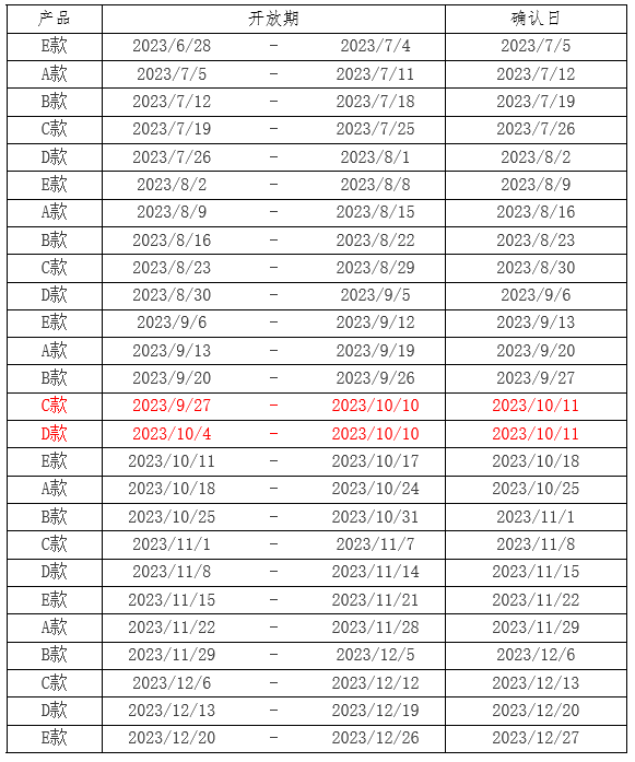 2023年下半年我行创鑫35天开放式净值型理财产品的开放期情况如下:
